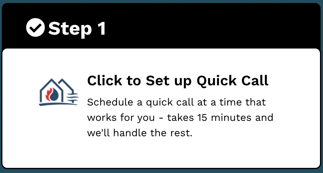 Schedule a quick call at a time that works for you - takes 15 minutes and we'll handle the rest.